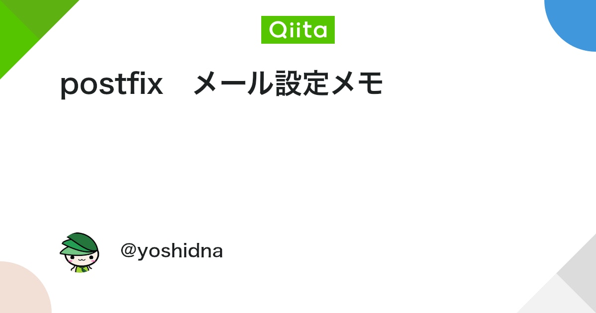 postfix メール設定メモ - Qiita*Update版をCentOS7 Postfix + SMTP-Auth/Submission PortとしてPost 概要 postfixを利用するときのよくやる設定メモ 環境 OS:CentOS /Redhat 6.x postfix:...